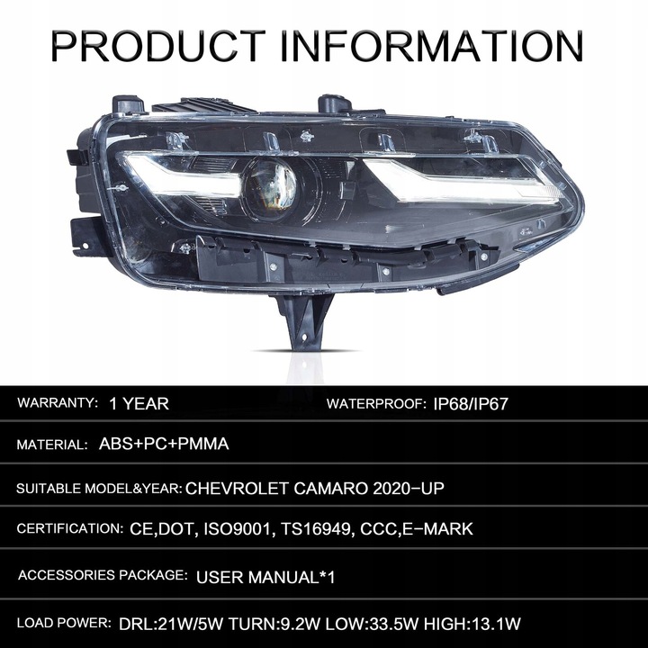 Chevrolet camaro 2019-2024 лампа лампы передние полный led vland комплект