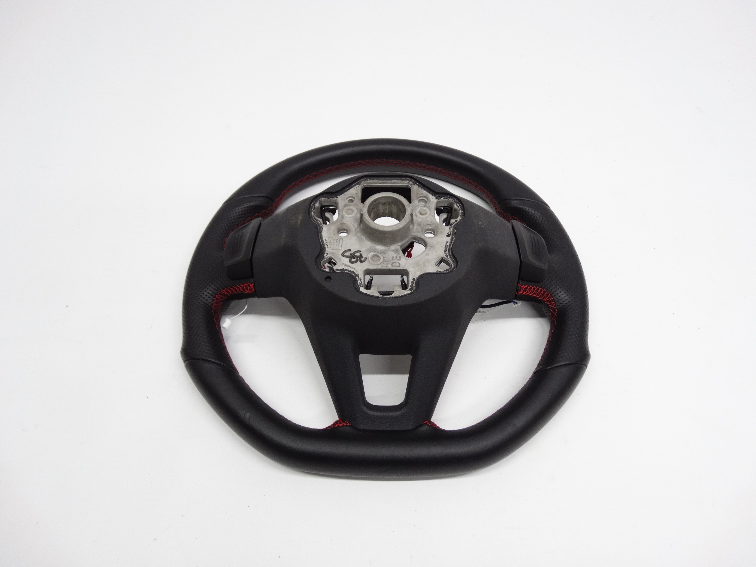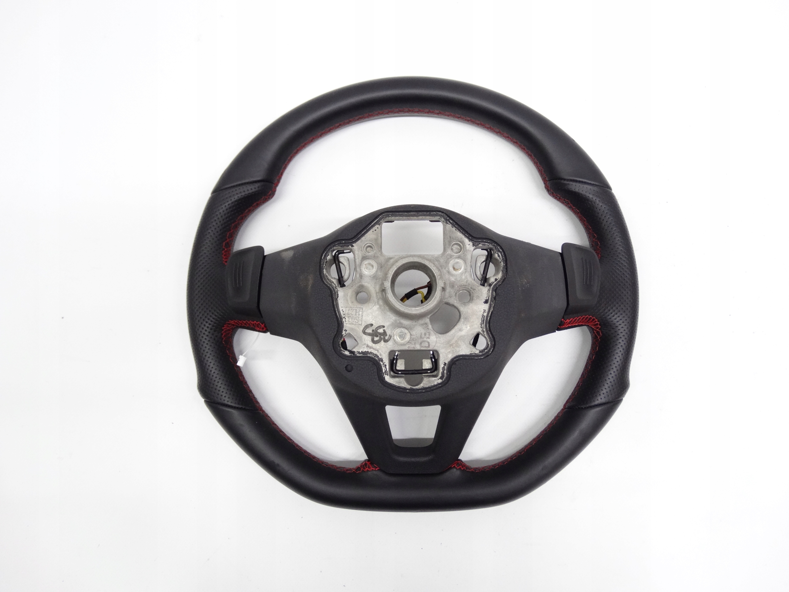 Oferujemy oryginalną skórzaną kierownicę multifunkcyjną z łopatkami zmiany biegów do VW Golf VIII GTI 2020+ - wersja przeszywana czerwoną nitką. Kierownica w bardzo dobrym stanie, nienaprawiana, stan widoczny jest na zdjęciach.