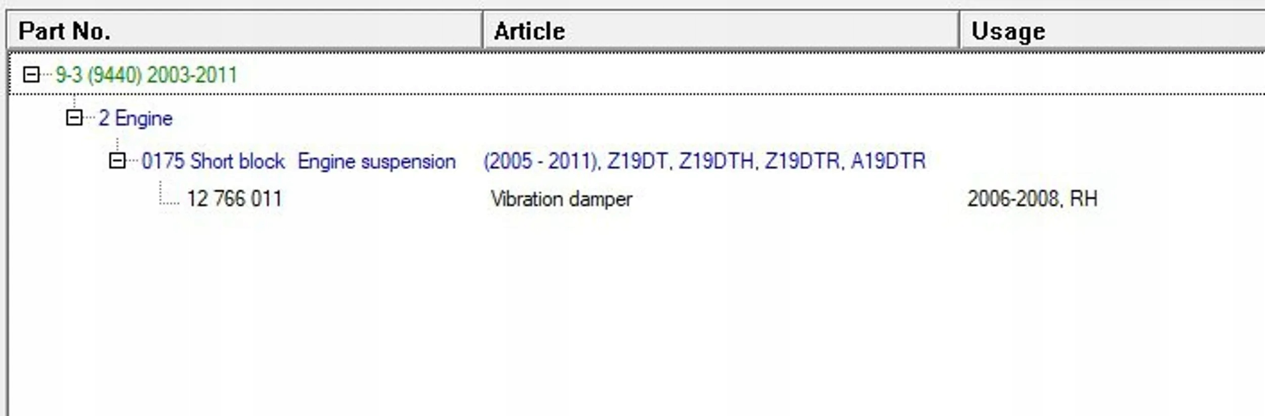 - Kod części: 12766011