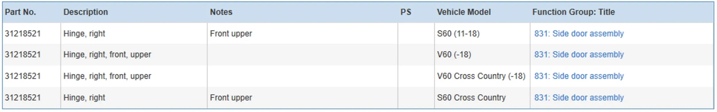 - Kod części: 31218521