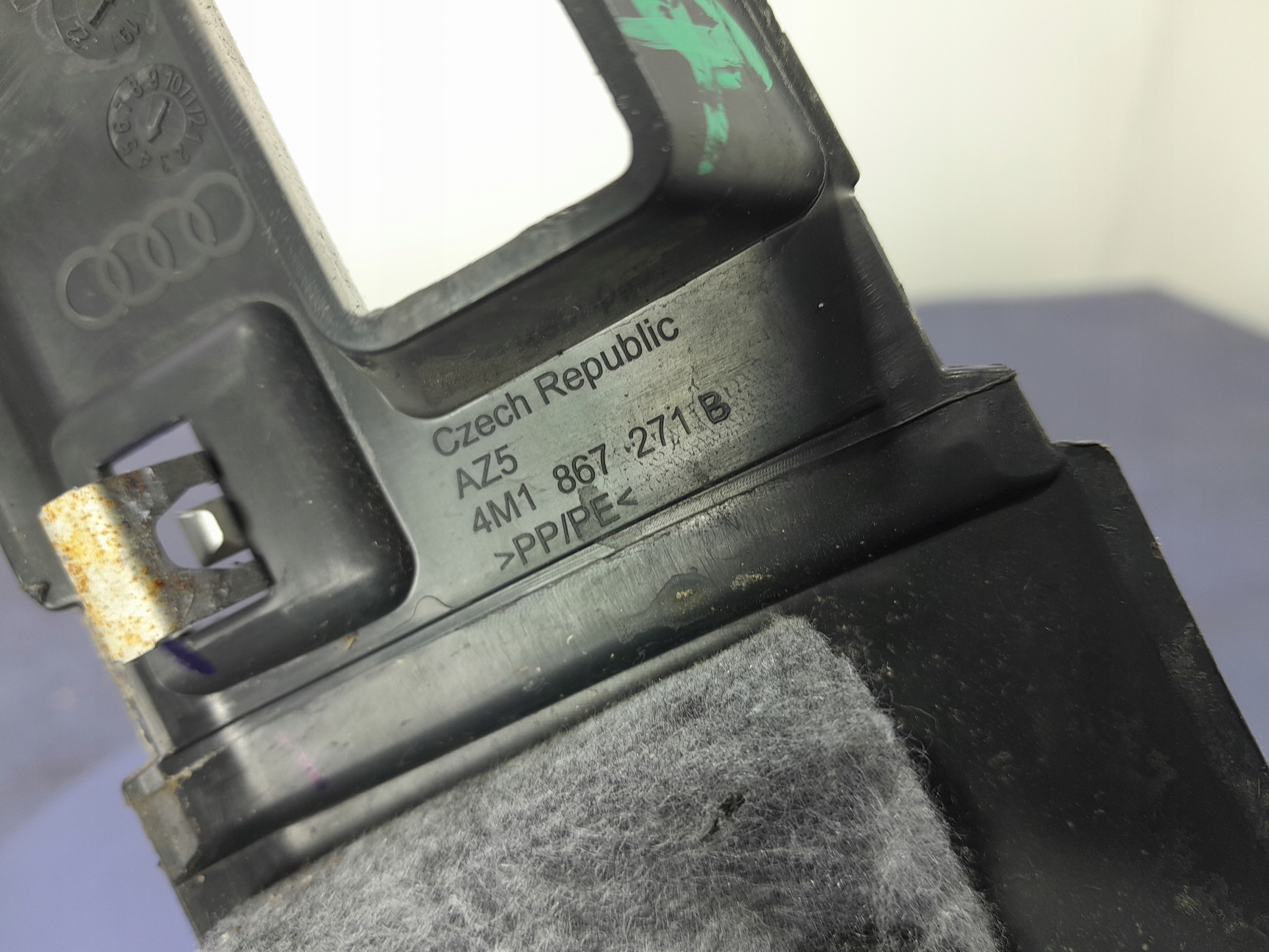 Opis: -jakość B && AUDI Q7 II 4M POSZYCIE SŁUPKA LEWE EU 4M1867271B