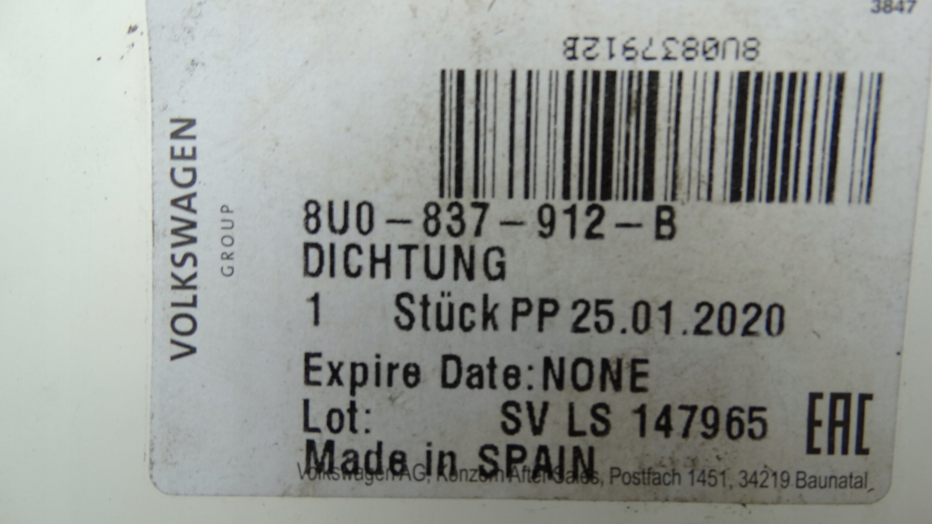 | Оригинальный каталожный номер: | 8U0837912B |