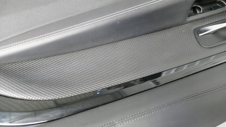 Kompletne czarne wnętrze BMW F33 w wersji Individual, obszyte miękką, gładką skórą z kontrastową białą nicią.