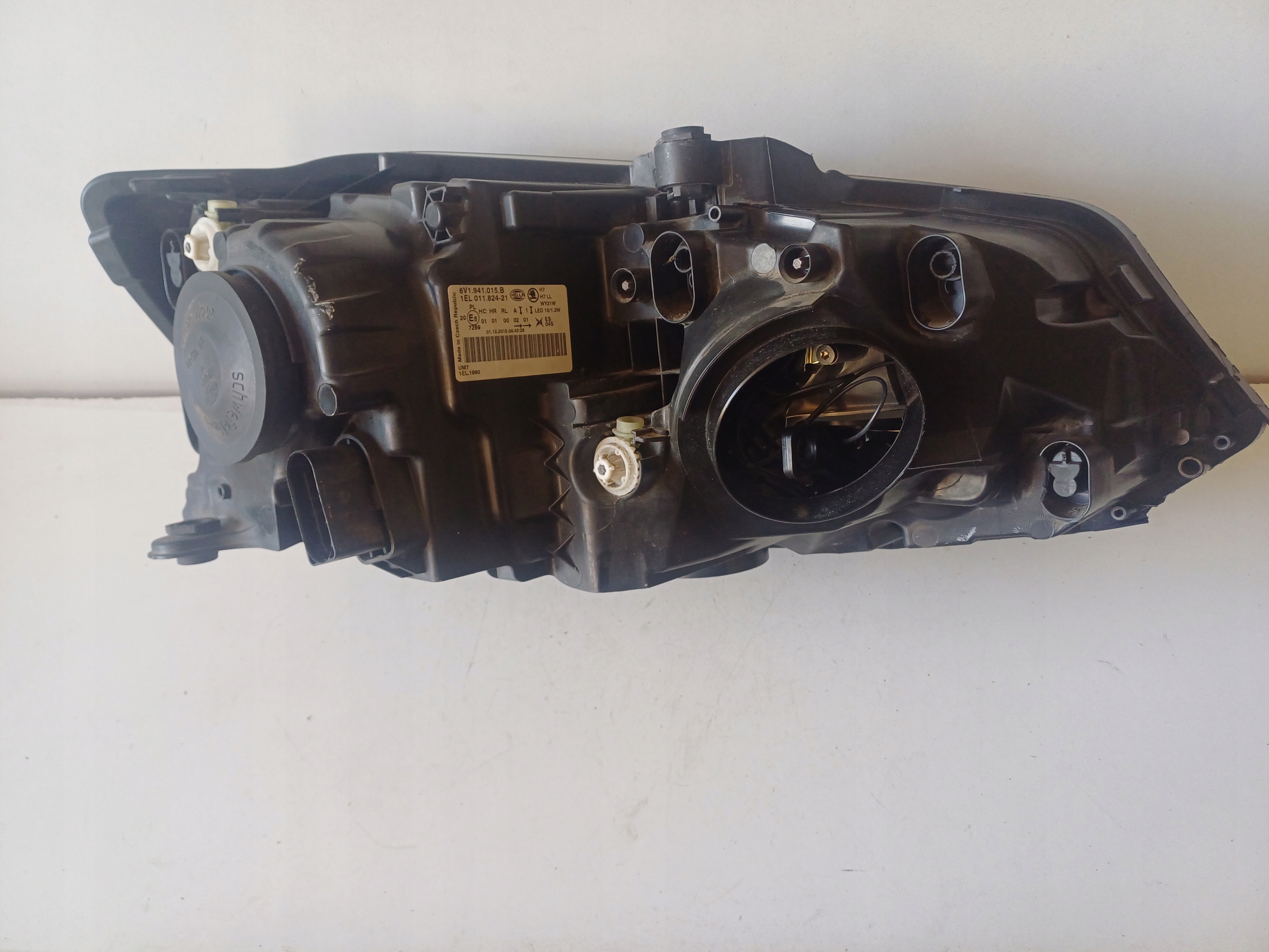 Orginalna uzywana lampa lewy przod do SKODA FABIA III 14-, brak jednego uchwytu drugi uszkodzony, led nie dziala badz brak umiejetnosci podlaczenia , brak kołkow od szkła i dekielka ,szklo pomalowane z jedej strony czerwonym lakierem, real foto