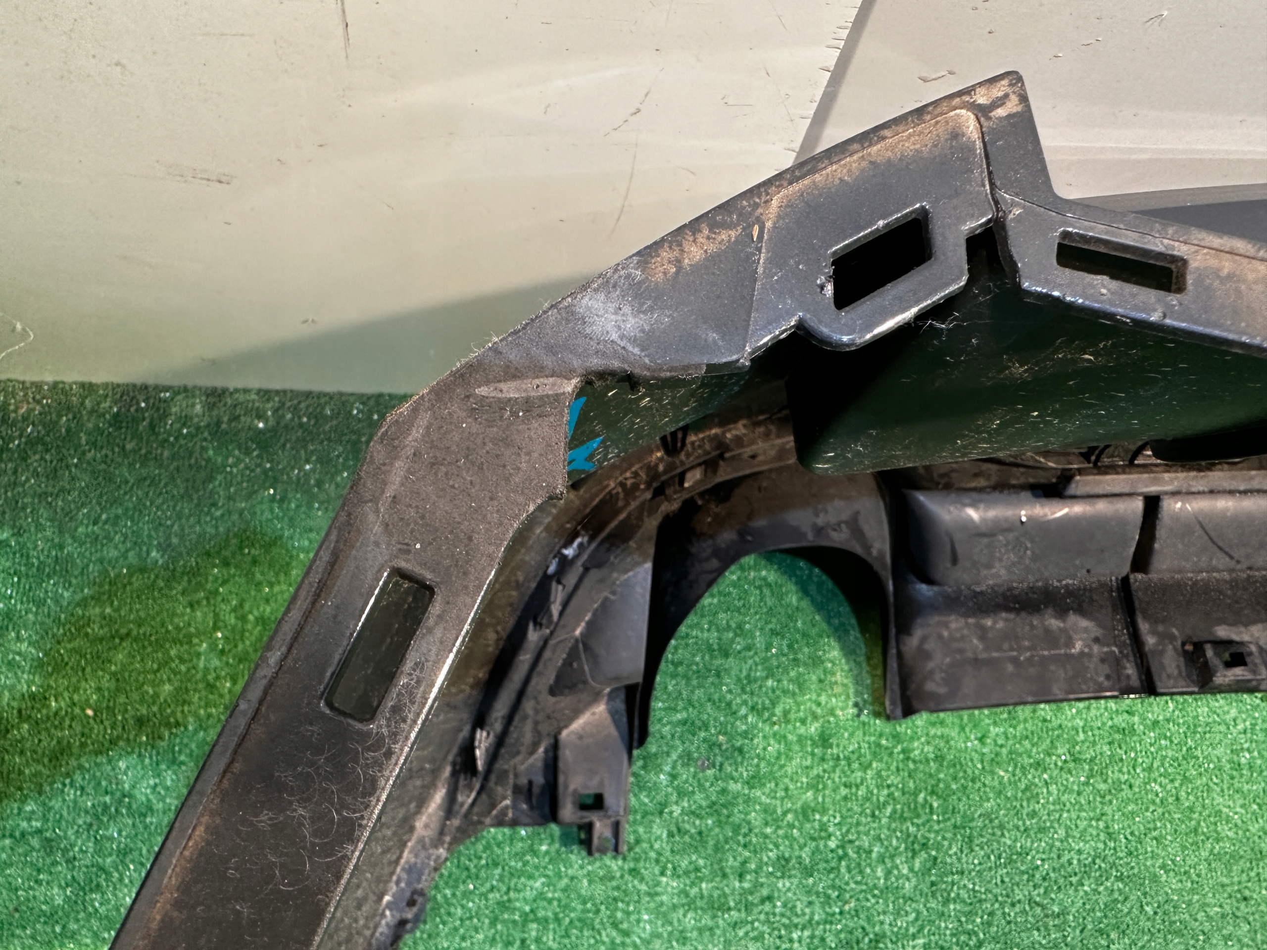 Zderzak wygrzewany i naprawiany w miejscach widocznych na zdjęciach. Wymaga ponownego lakierowania.