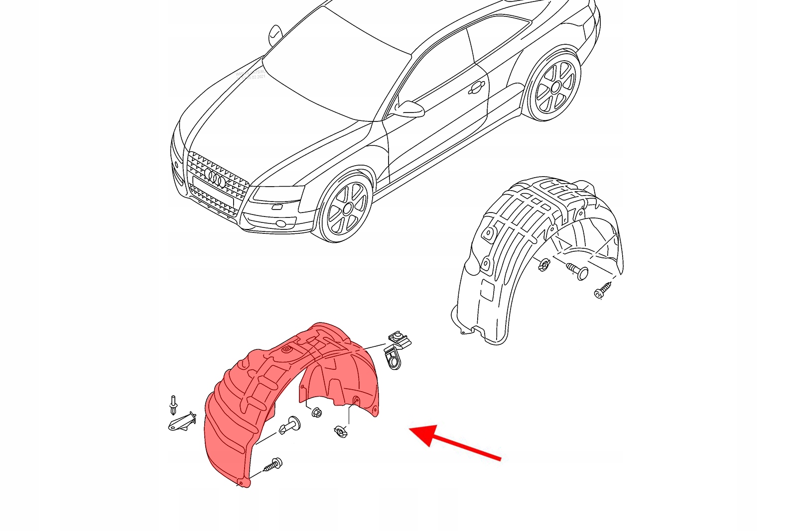 Wewnętrzne nadkole materiałowe przednie lewe, do AUDI A5 B8 (8F7) Cabrio 2009-2017.