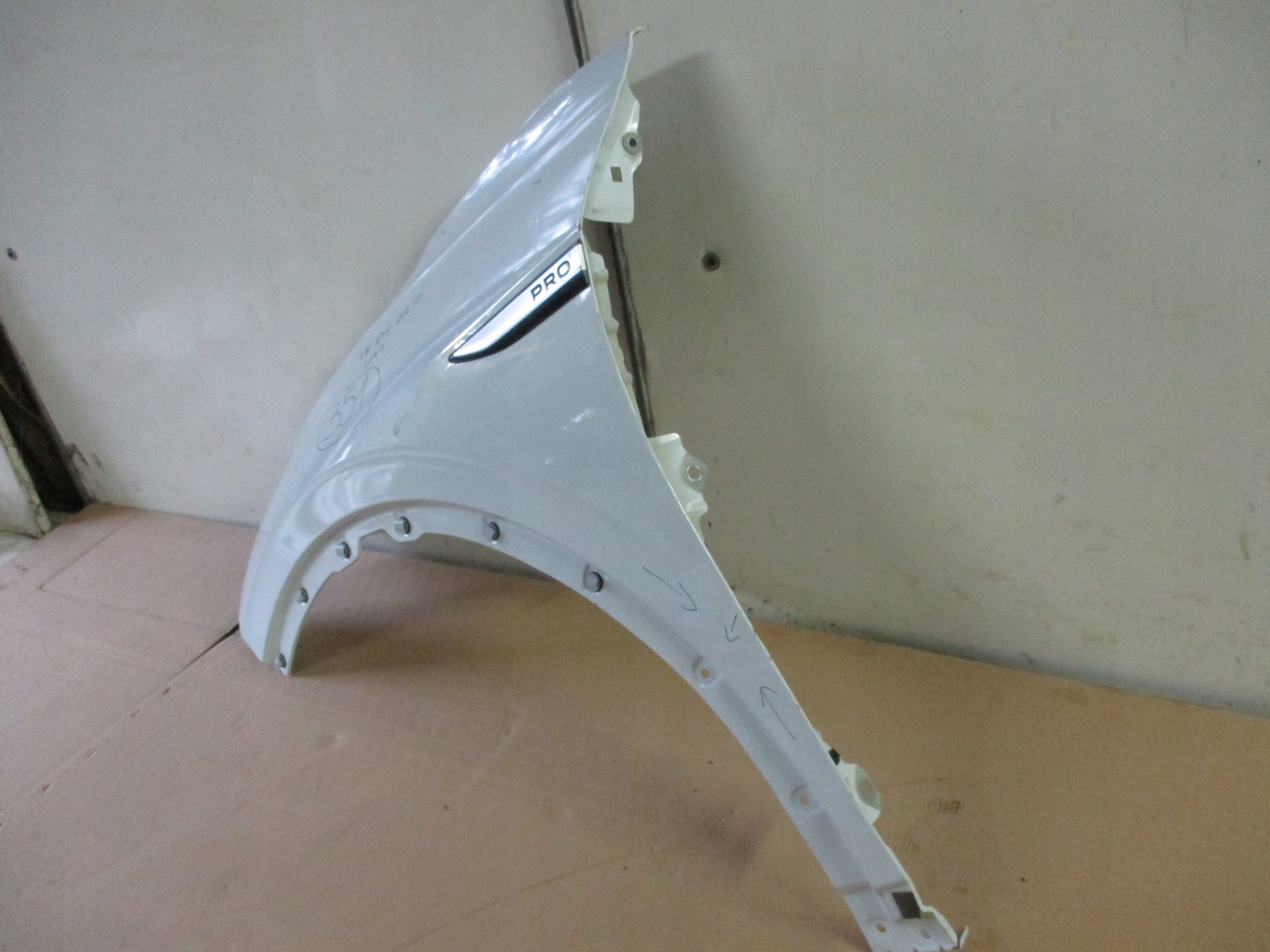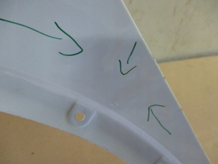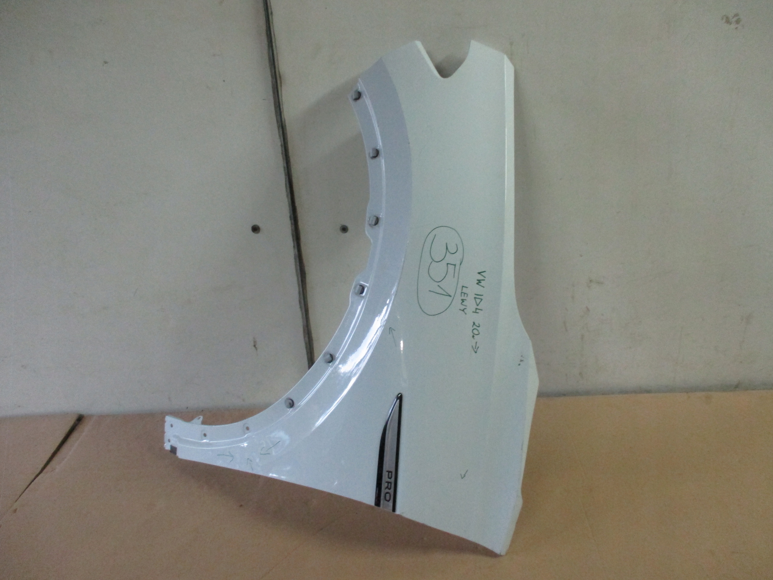 Błotnik lewy przód VW ID4 20r- Uszkodzenia zaznaczone na częśći.