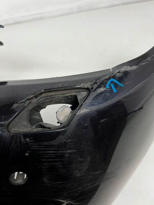 Uszkodzenia zderzaka pokazane są na zdjęciach