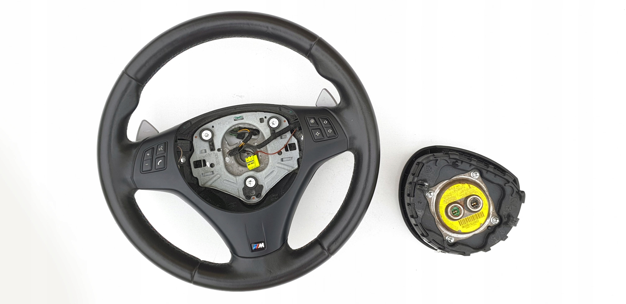 Przedmiotem ogłoszenia jest skórzana kierownica z poduszką do BMW E90 z wersji m-power wzbogacona o łopatki zmiany biegów (DSG).