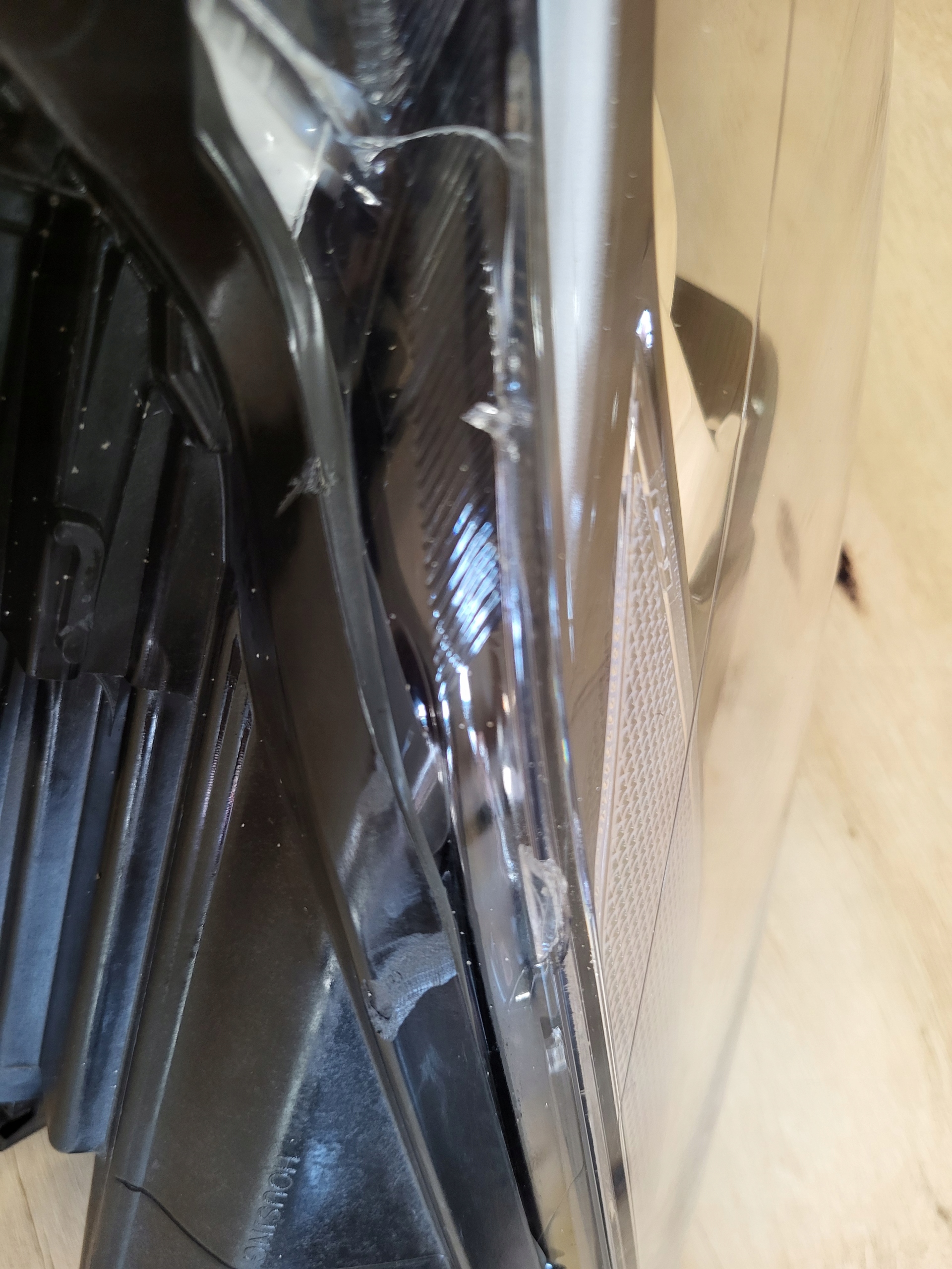 Urwane uchwyty i pęknięcie z tyłu.