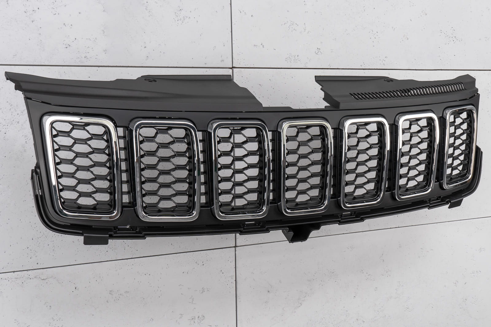 Grill przedni chromowany, dla JEEP GRAND CHEROKEE IV (WK2) 2017-2021 (wersja po drugim faceliftingu). Nie pasuje do wersji SRT i TRACKHAWK.