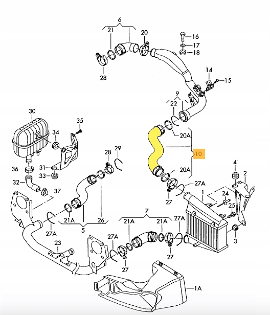 Przewód znajduje się pomiędzy intercoolerem, a kolektorem ssącym.