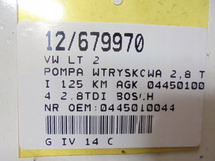 Lt 2 насос впрыскивающий 0445010044 2,8tdi