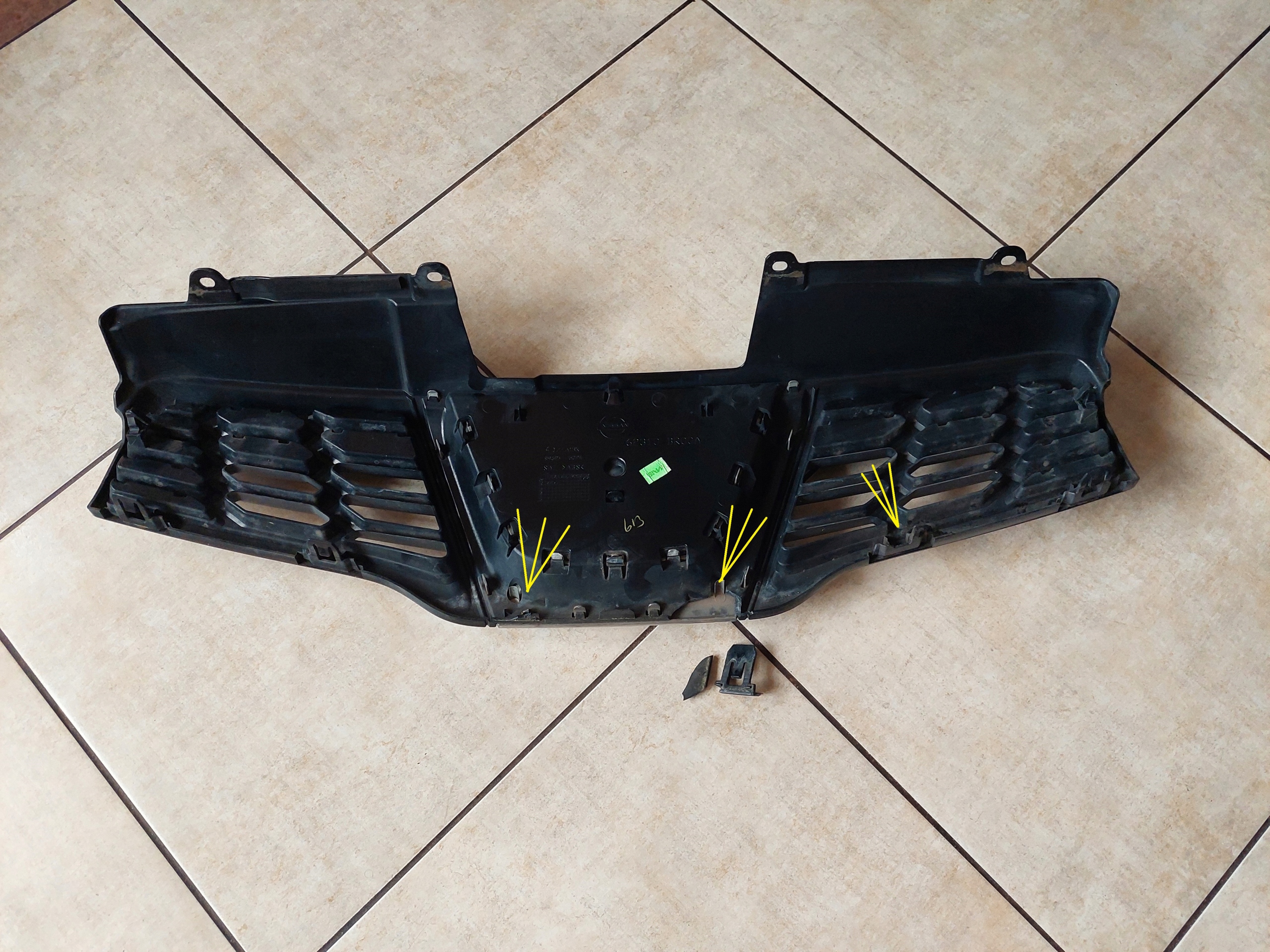 STAN JAK NA ZDJĘCIACH --- GRILL NOSI DROBNE ŚLADY UŻYTKOWANIA --- USZKODZONE TRZY ZACZEPY ( zaznaczone i pokazane na zdjęciach ) --- ORYGINAŁ !!! ---- NISSAN QASHQAI - ROCZNIK 2010 - 2013 !!!