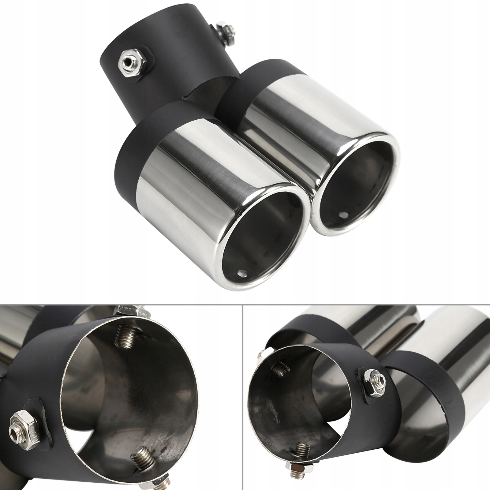 Ilość: 1 Rozmiar: Około 55 x 62 x 160mm,2.17 x 2.44 x 6.3in (średnica wylotu/średnica interfejsu/długość) Pakiet zawiera: 1 x Podwójna rura wydechowa