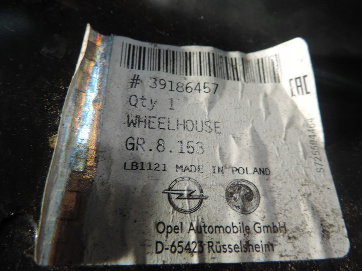 | Оригинальный каталожный номер: | 39186457 |