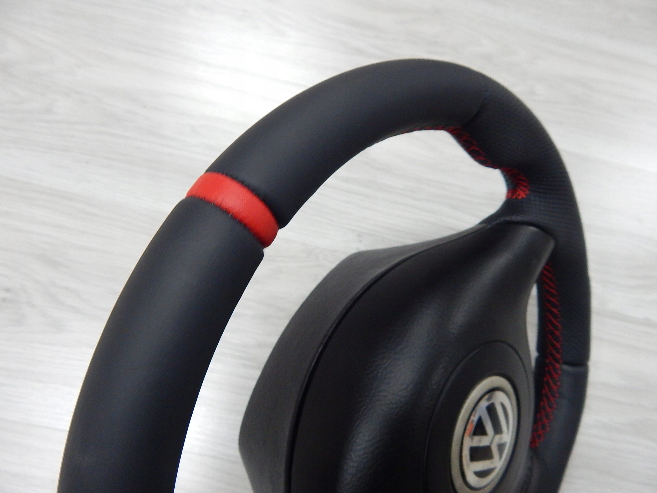 używana kierownica obszyta nową naturalną skóra samochodową 1-go gatunku (perforowana + gładka)