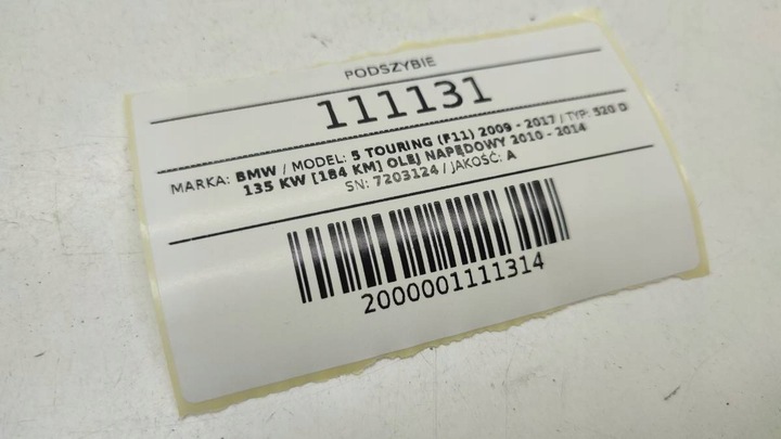 Przedmiot aukcji: PODSZYBIE BMW F10 F11 EUROPA 7203124 USZKODZONY