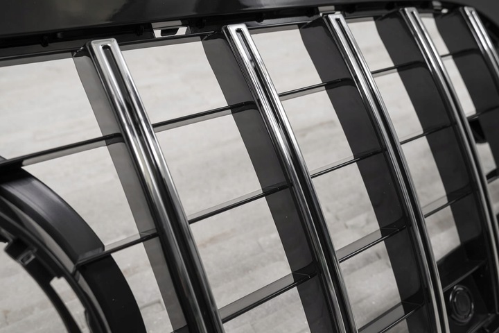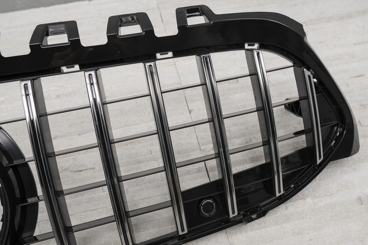 Dedykowany grill zaprojektowany został w stylu charakterystycznym dla samochodów z segmentu GT. Kratka grilla ozdobiona została szerokimi, czarnymi poprzeczkami, które nieodzownie przywodzą na myśl budzące respekt, pełne mocy samochody z najwyższej półki. Element zachwyca sportowym charakterem, a połysk czarnych elementów dodaje mu elegancji - dzięki czemu doskonale współgra z imponującym designem Mercedesa.