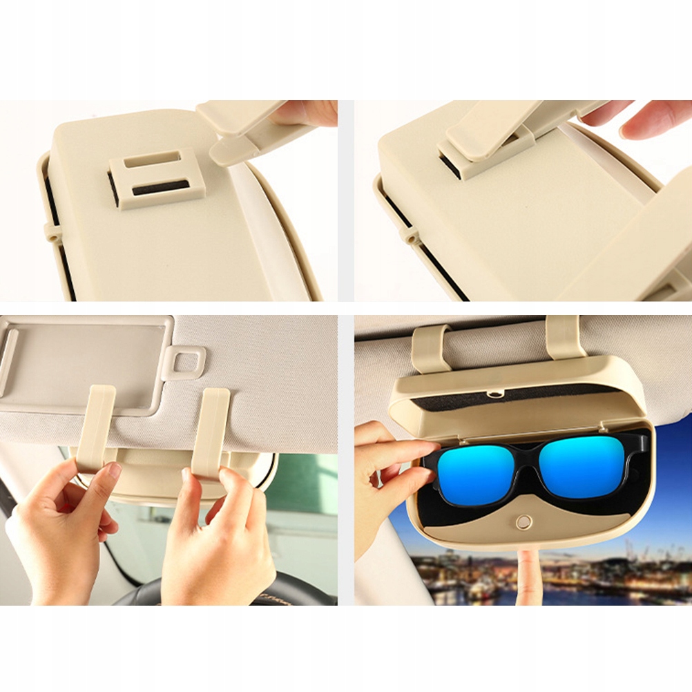 Jest to etui na okulary samochodowe, które jest wykonane z najwyższej jakości materiału ABS do trwałego i praktycznego zastosowania. Podwójna klamra, nie tylko może być etui na okulary, ale także może być organizerem na wizjer samochodowy. Klamra nie poluzuje się łatwo i nie trzeba poświęcać czasu na użycie śrub do instalacji. Świetne etui na okulary do większości samochodów.