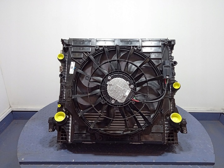 Opis: komplet, chłodnica wody 8472274, chłodnica klimatyzacji, intercooler, wentylator z obudową 8589042, uszkodzona obudowa widoczna na zdjęciach, -jakość B && BMW X5 G05 2.0d 25d ZESTAW CHŁODNIC PAS PRZEDNI KOMPLET