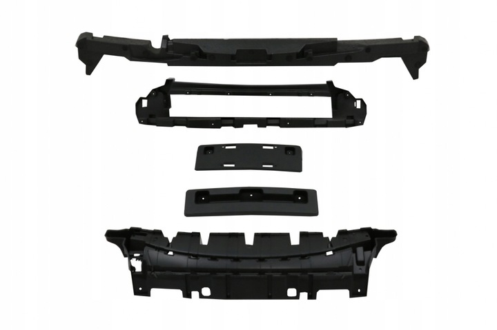 Przedni zderzak wyposażony w otwory PDC, uchwyty PDC, centralną kratkę, centralną dolną kratkę, boczne kratki i szczotkowane listwy aluminiowe