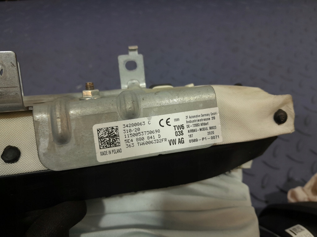 Opis: kompletny zestaw do regeneracji, w zestawie poduszka kolanowa 5E4880841D, poduszka kierowcy 5E3880201S, poduszka airbag pasażera 5E3880204E, z pasami bezpieczeństwa tył 2X 5E7857805B, z pasami bezpieczeństwa kierowcy 5E3857705A i pasażera 5E3857706A, do naprawy bez możliwości zwrotu, -jakość C && SKODA OCTAVIA IV DESKA ROZDZIELCZA PASY PODUSZKI DO REGENERACJI EU
