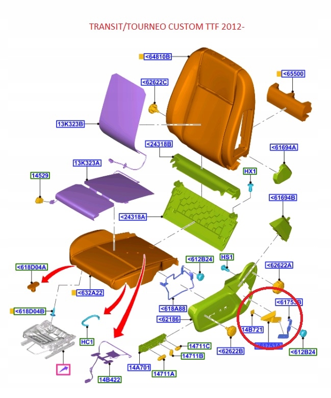 Держатель подъёма сиденья transit custom 12-18_ 1805641 _ bk21-61755-ae35b8