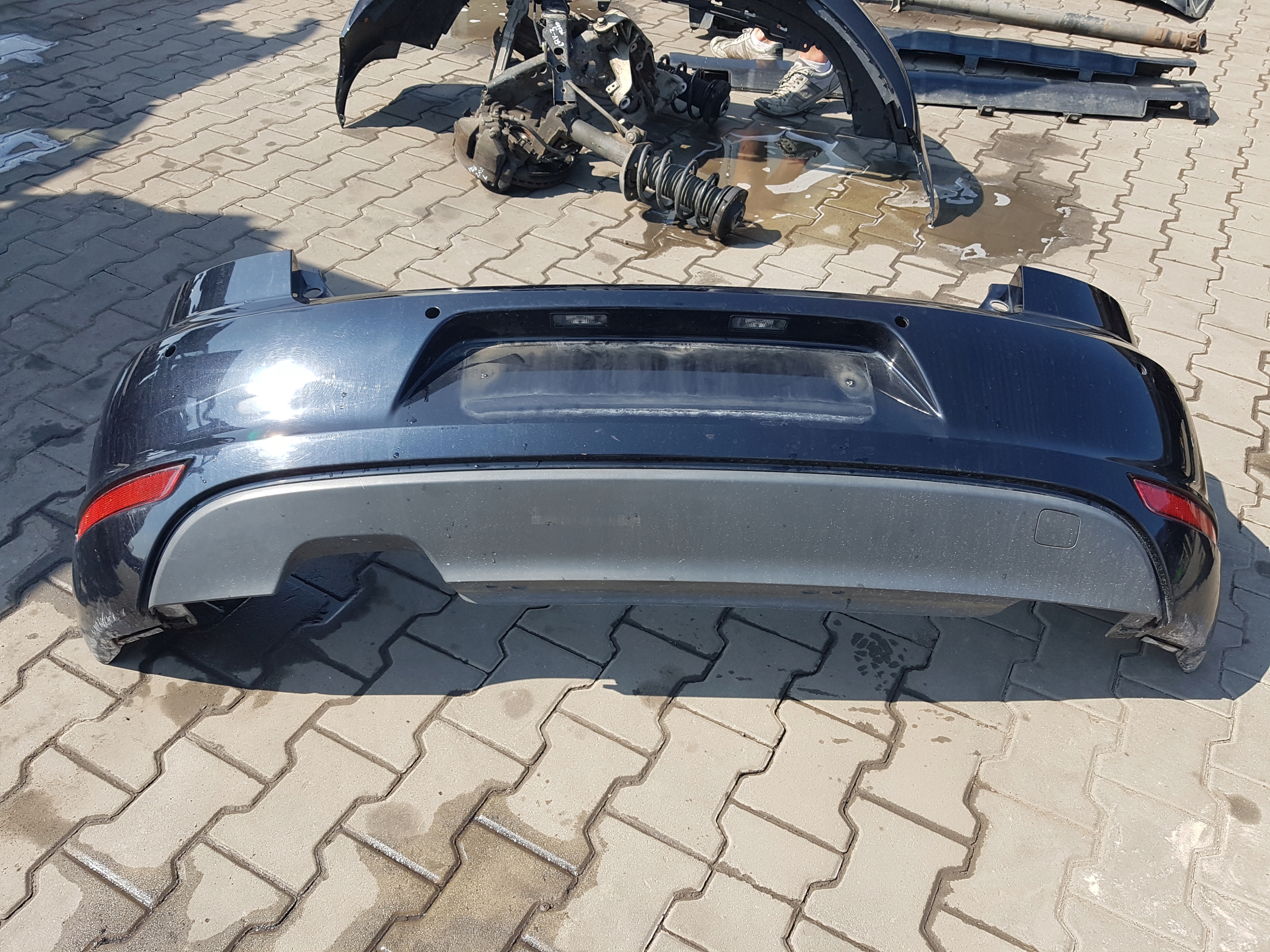 VW GOLF VI 08-13r CABRIO ZDERZAK TYŁ. POSIADA ZADRAPANIA I PRZERWANE ZACZEPY. KOD LAKIERU LC9X.