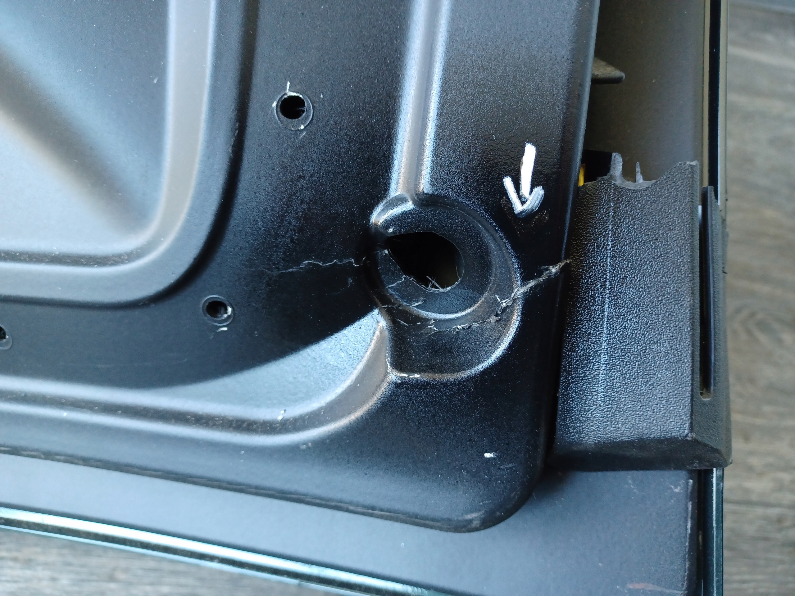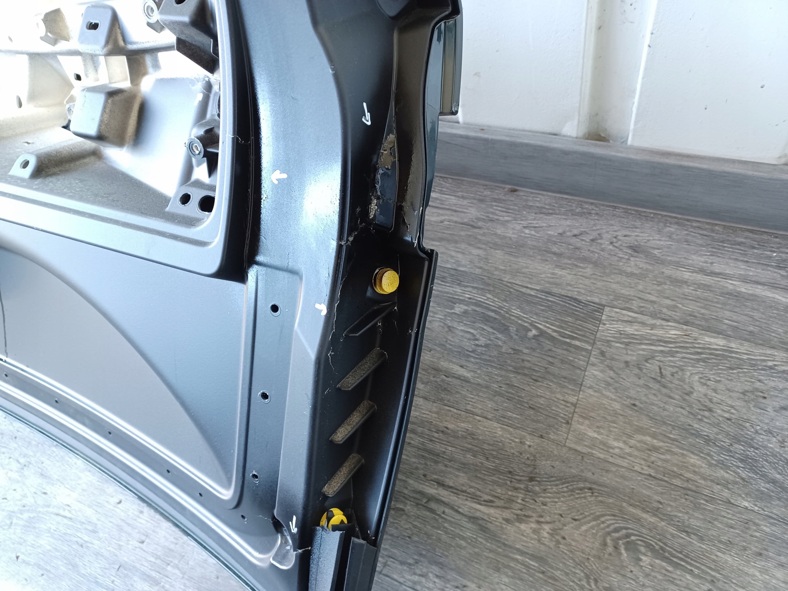 USZKODZENIA ZAZNACZONO ( PĘKNIĘCIA W TYLNEJ CZĘŚĆI KLAPY ) JEŚLI TAKIE WYSTĘPUJĄ