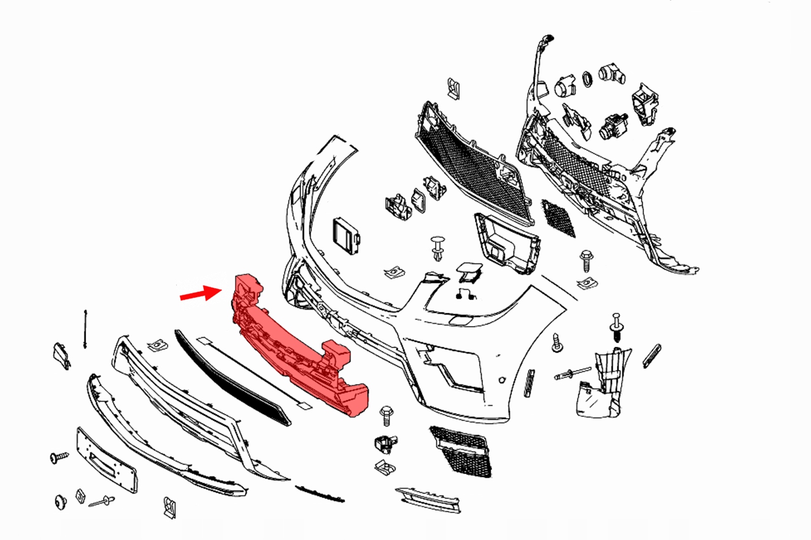 Absorber przedniego zderzaka, dla MERCEDES ML (W166) 2011-2015.