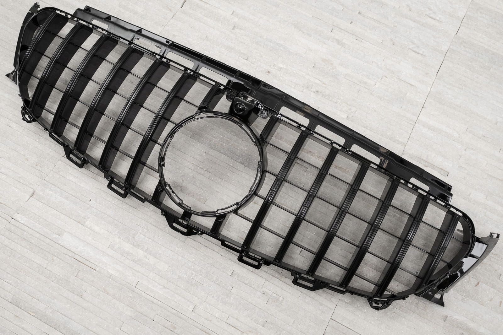 Grill przedni, model GT / PANAMERICANA zaprojektowany dla MERCEDES E-CLASS W213 2016-2020 PRZED FACELIFTINGIEM (WERSJA Z FABRYCZNĄ KAMERĄ).