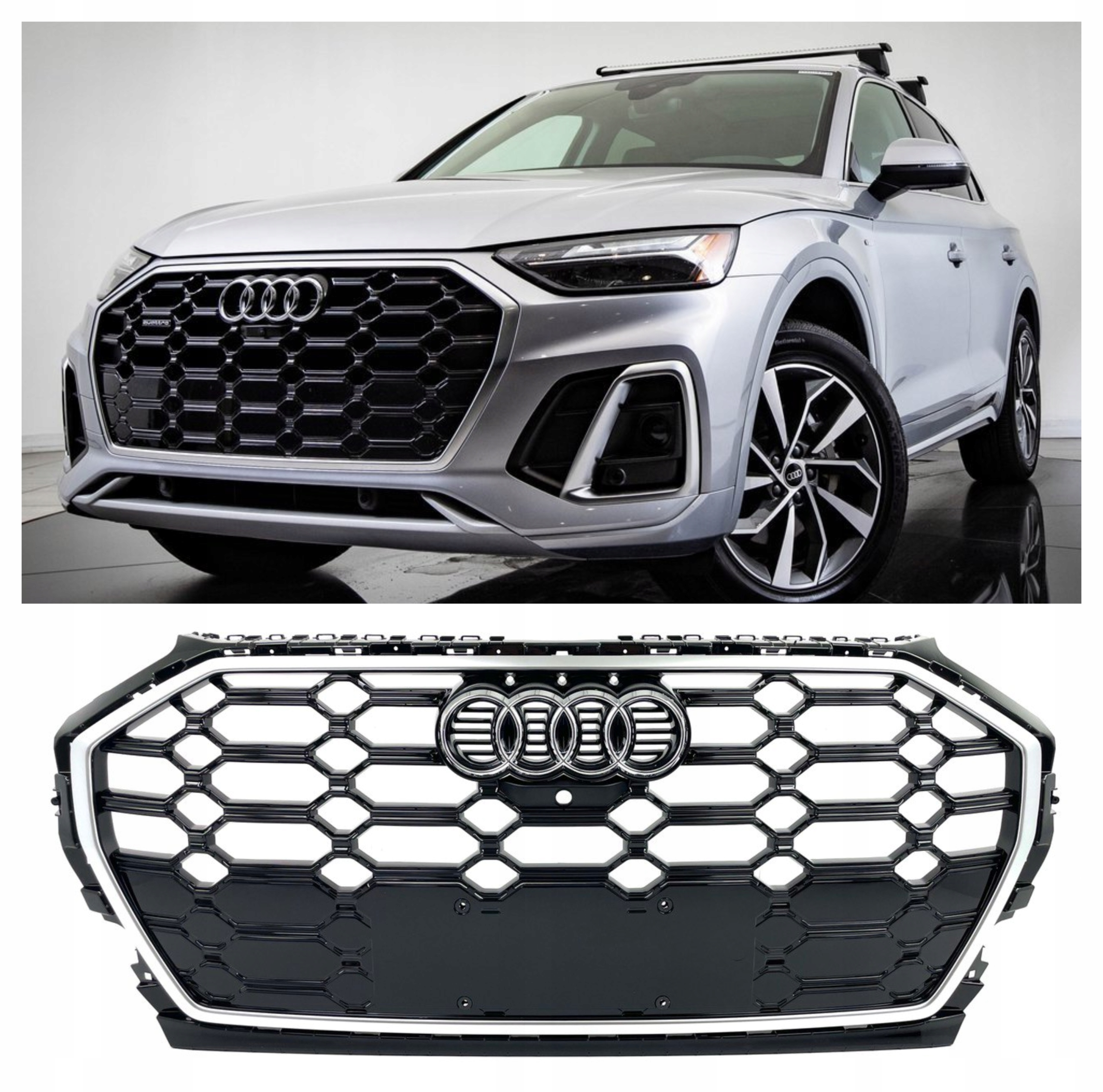 Do sprzedaży oferujemy nowy, kompletny grill do Audi Q5 80a lift w oryginalnej konfiguracji S-line