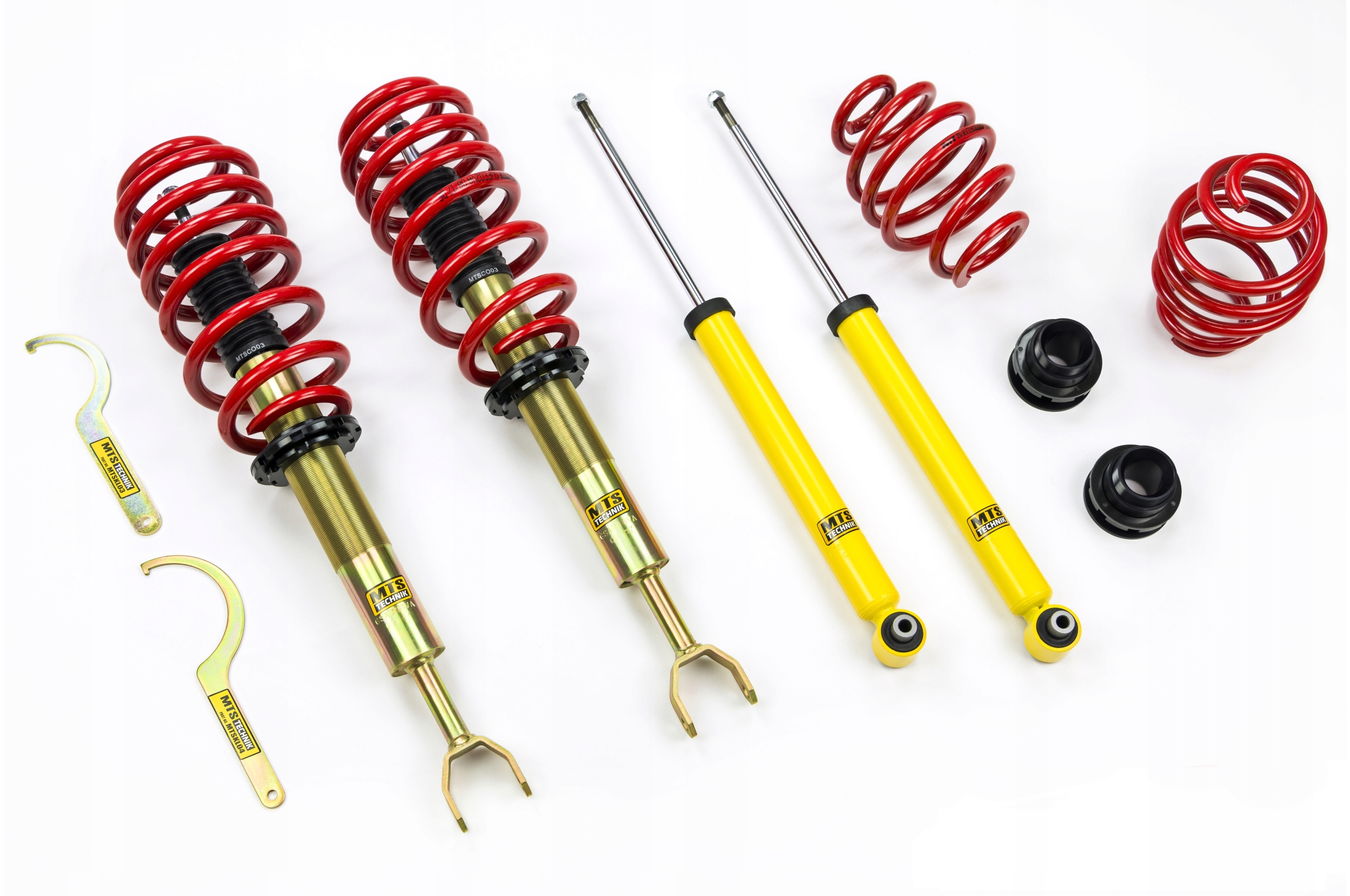 Zdecydowana większość zestawów zawiera sprężyny zaprojektowane i wyprodukowane przez znaną niemiecką firmę Eibach. Jako najbardziej renomowany producent od ponad 60 lat produkuje sprężyny m.in. do Bugatti Veyron, bolidów F1, Nascar, WRC. Zbalansowana charakterystyka, wyłącznie najwyższej jakości stal, najmniejsze tolerancje produkcji w branży, najlepsze zabezpieczenie antykorozyjne i niezwykła trwałość – to cechy, którymi Eibach sygnuje także zestawy gwintowane MTS Technik.
