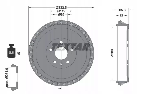 - Całkowita wysokość bębna hamulcowego [mm]: 65,3