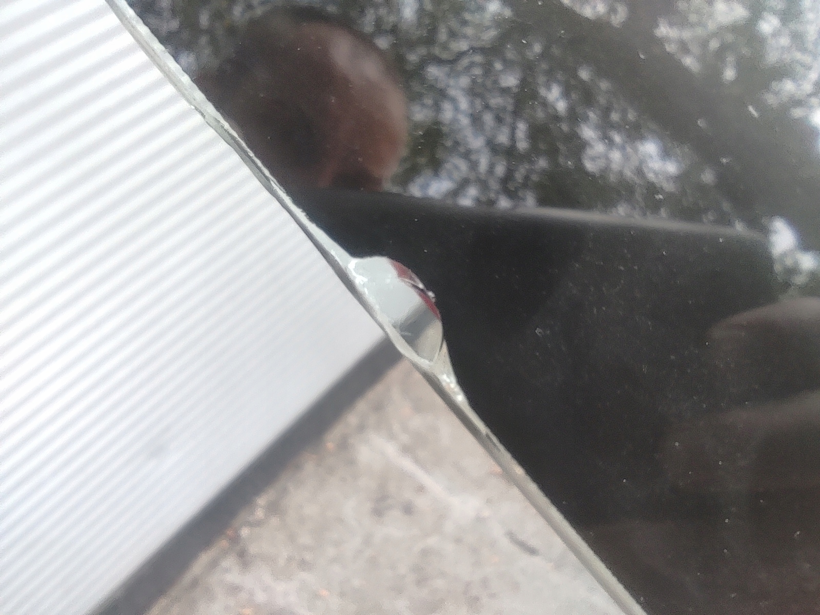 - wgniecenie na środku, odprysk na szybie -