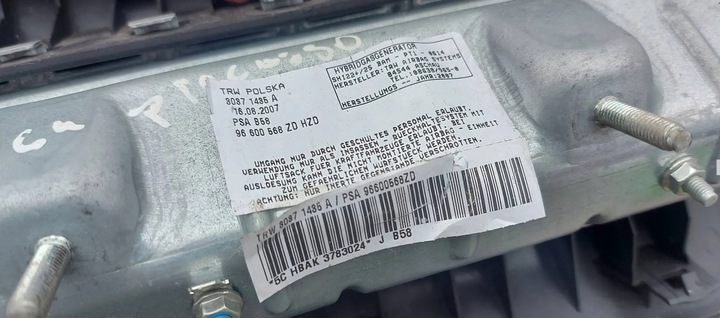 deska rozdzielcza wraz z poduszka kierowcy + poduszka pasażera + poduszka kolanowa + pasy przednie + napinacze pasa + sensor.Prawy schowek uszkodzony.Wszystkie airbagi oryginalneCzęści pochodząca z CitroenC4 I Picasso