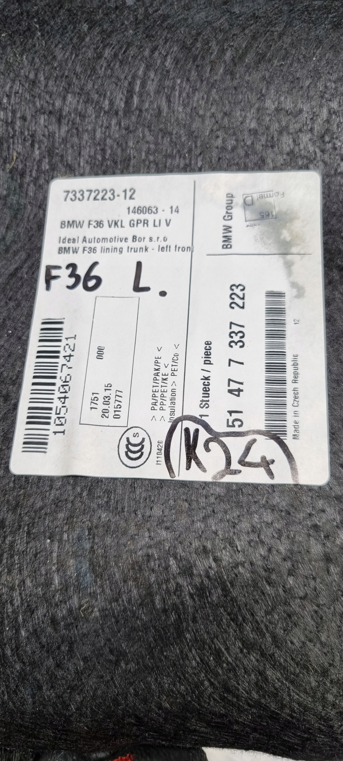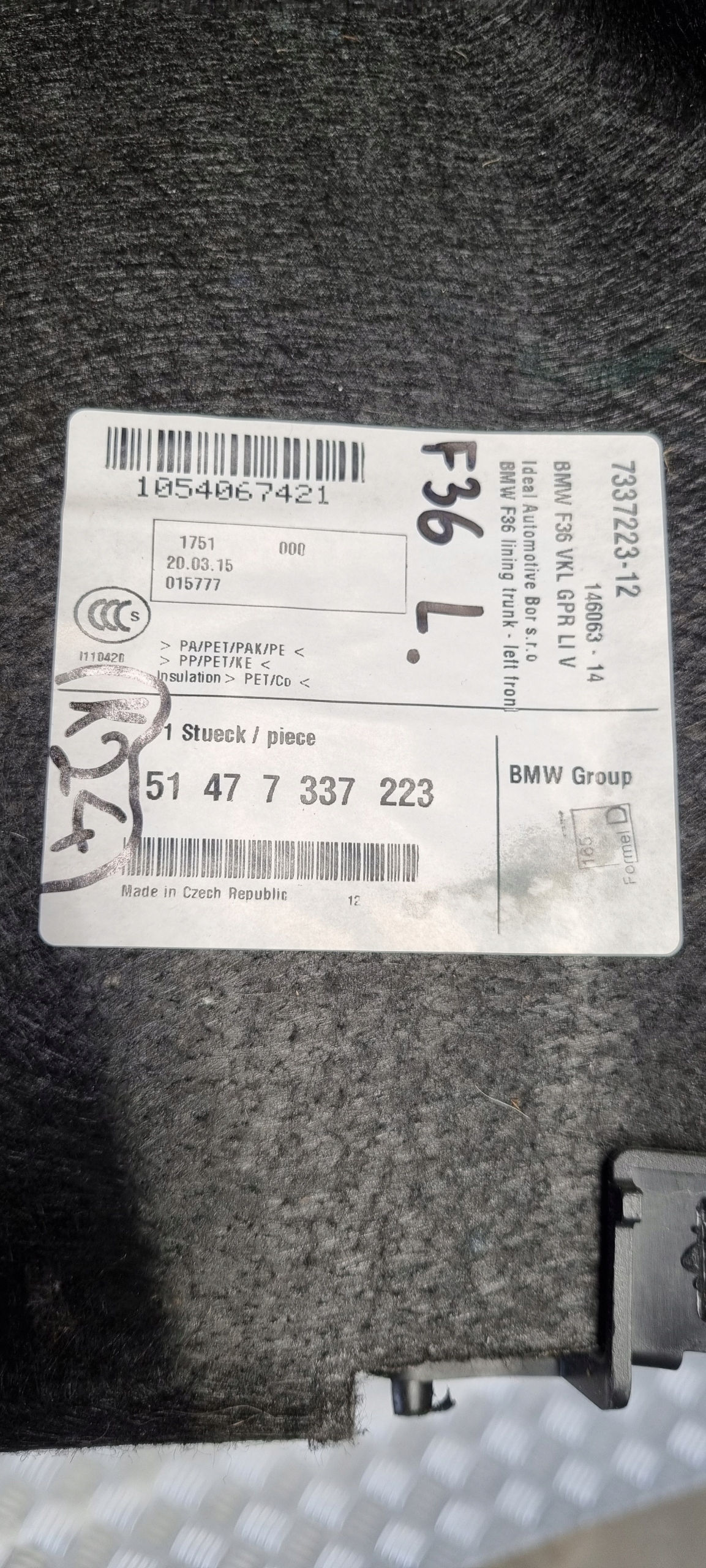 BMW F36 BOCZEK BAGAŻNIKA LEWY