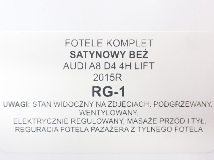 Fotele AUDI A8 D4 KOMPLET