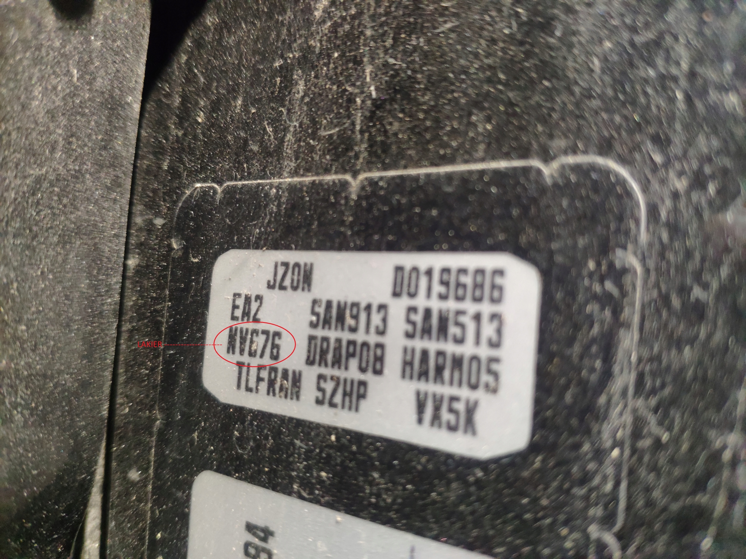 - KOLOR NADWOZIA CZARNY KOD LAKIERU "NV676"
