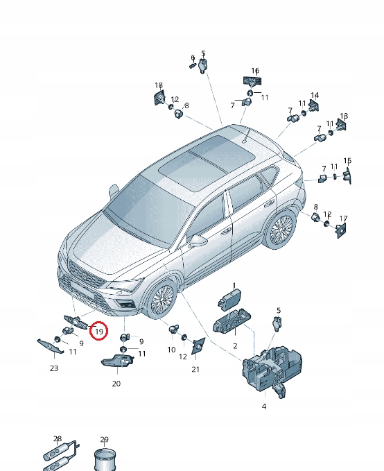 Корзина крепление датчик pdc перед левый внутренний средство решётка ateca
