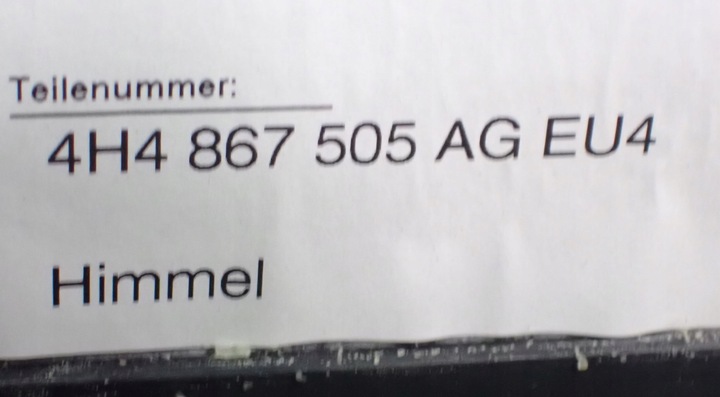 Потолок потолок чёрная audi a8 d4 4h4867505ag eu4