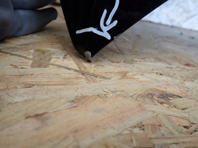 Maska w zaznaczonym miejscu uszkodzona naprawiana