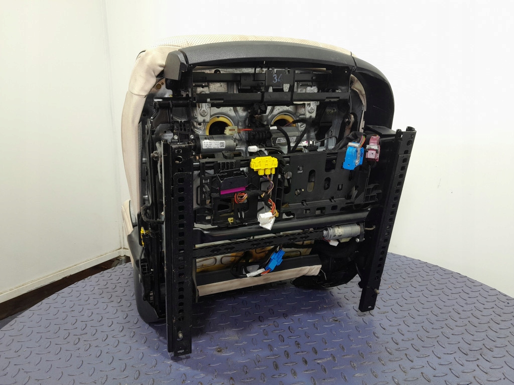 Opis: fotel dynamiczny, tapicerka 815 skóra Nappa Semianilin - kolor beżowy, elektrycznie składany, wentylowany i podgrzewany, z pamięcią ustawień, inteligentne elektrycznie składany zagłówek komfortowy, bez sterowników fotela, wersja europejska, do przeczyszczenia, widoczne ślady użytkowania, -jakość B && MERCEDES S W222 LIFT FOTEL KIEROWCY PRZÓD LEWY SKÓRA NAPPA SEMIANILIN EU