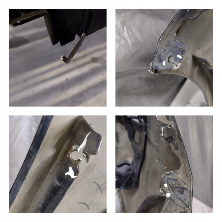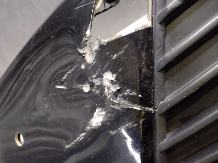 ZDERZAK POSIADA ZARYSOWANIA, ODPRYSKI, PĘKNIĘCIA, BRAK CZUJNIKA, BRAK ZAŚLEPKI HAKA, PRZEGIĘCIE, BRAK DOLNEJ LISTWY, OTARCIA ORAZ USZKODZENIA WIDOCZNE NA ZAŁĄCZONYCH ZDJĘCIACH!