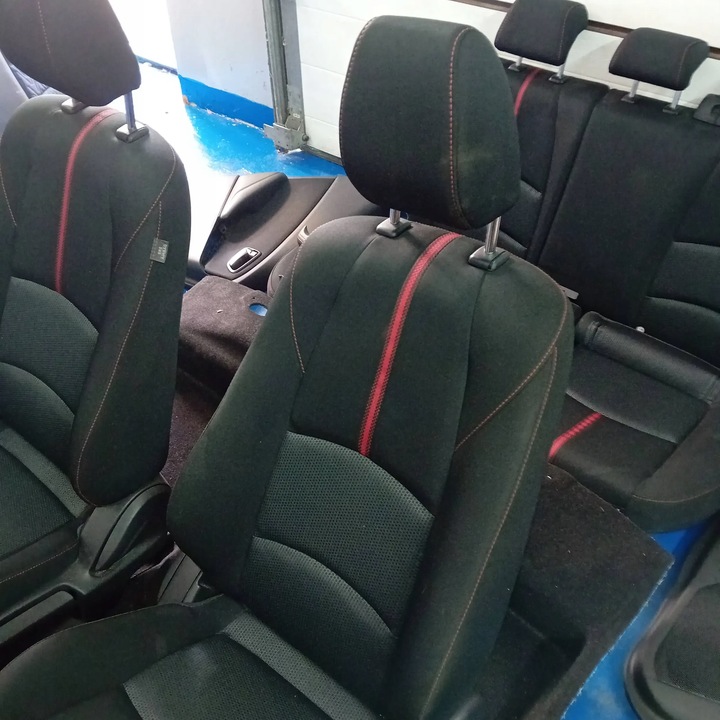 - OPIS Komplet foteli do mazdy 2 dj i dl. Całe wnętrze jest w bardzo dobrym stanie z auta wersji Europejskiej. Wersja gt z czerwonymi przeszyciami.
