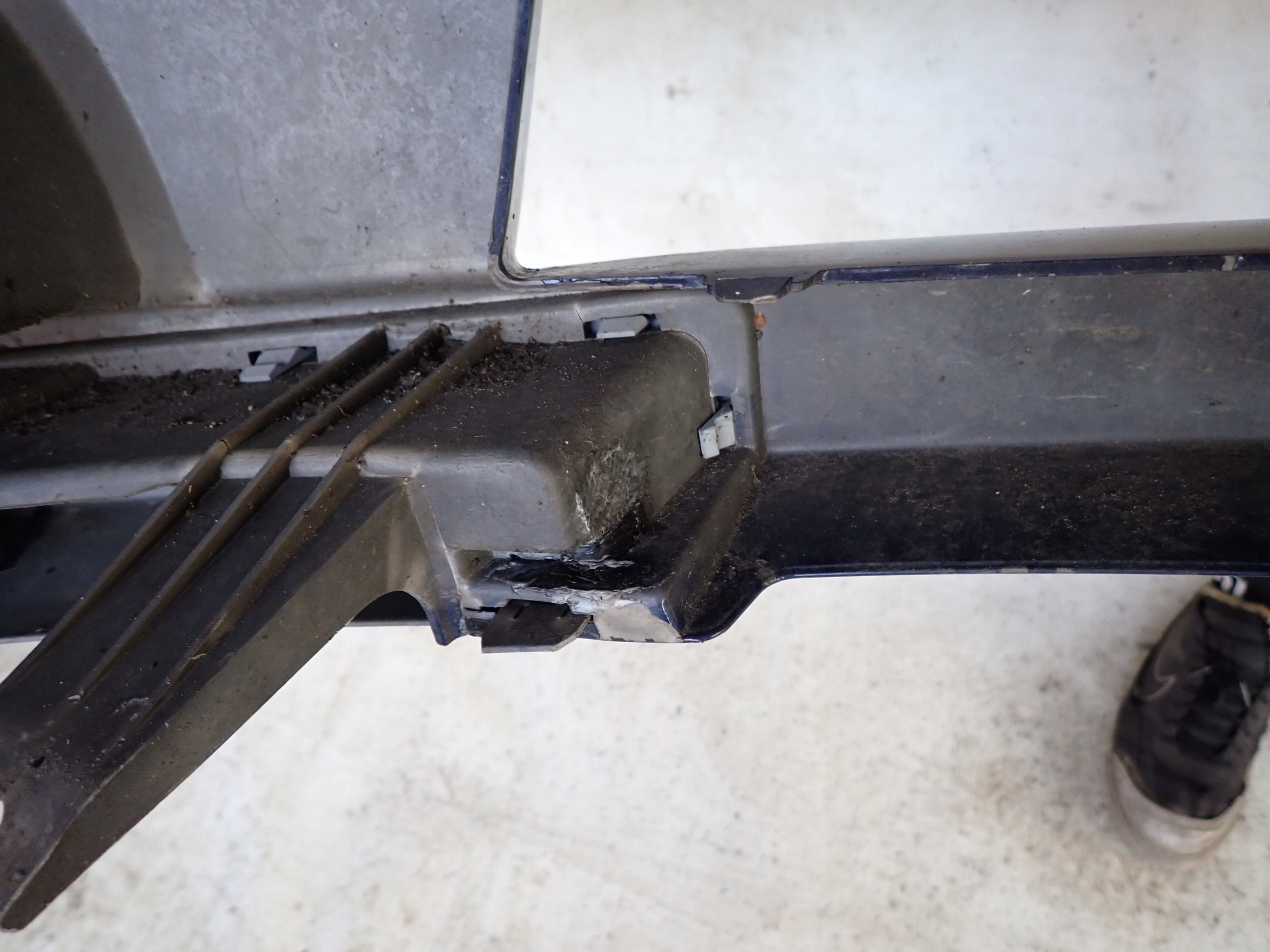 ZDERZAK KLEJONY Z LEWEJ STRONY W MIEJSCU PRZYBLIŻONYM NA ZDJĘCIACH.