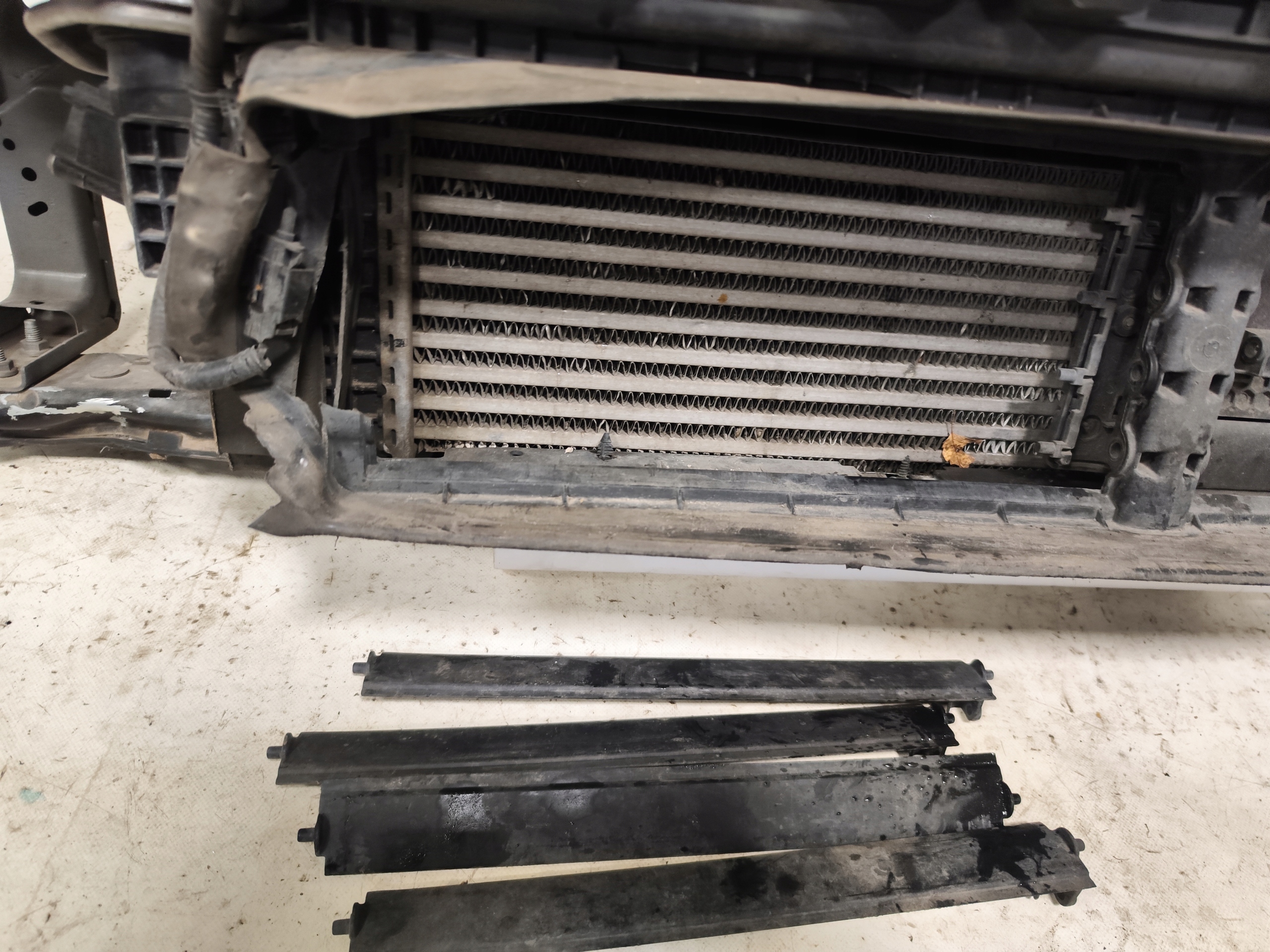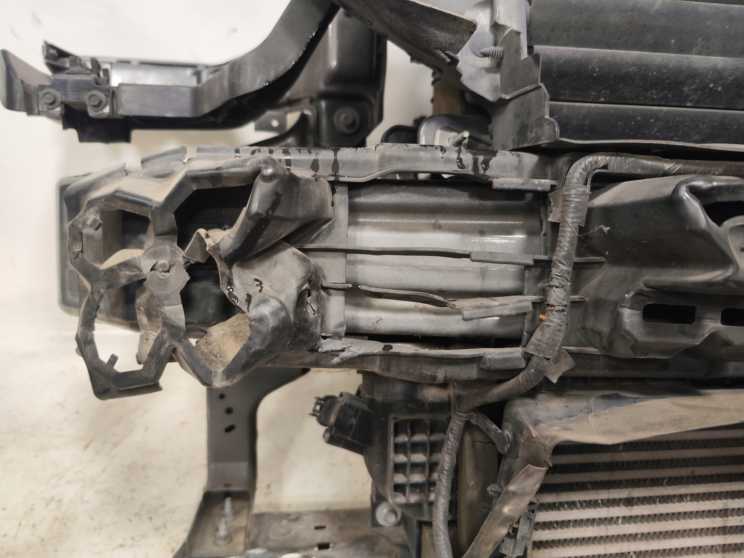 Uszkodzona roletka z prawej dolnej strony, absorber i dolna belka pod chłodnice