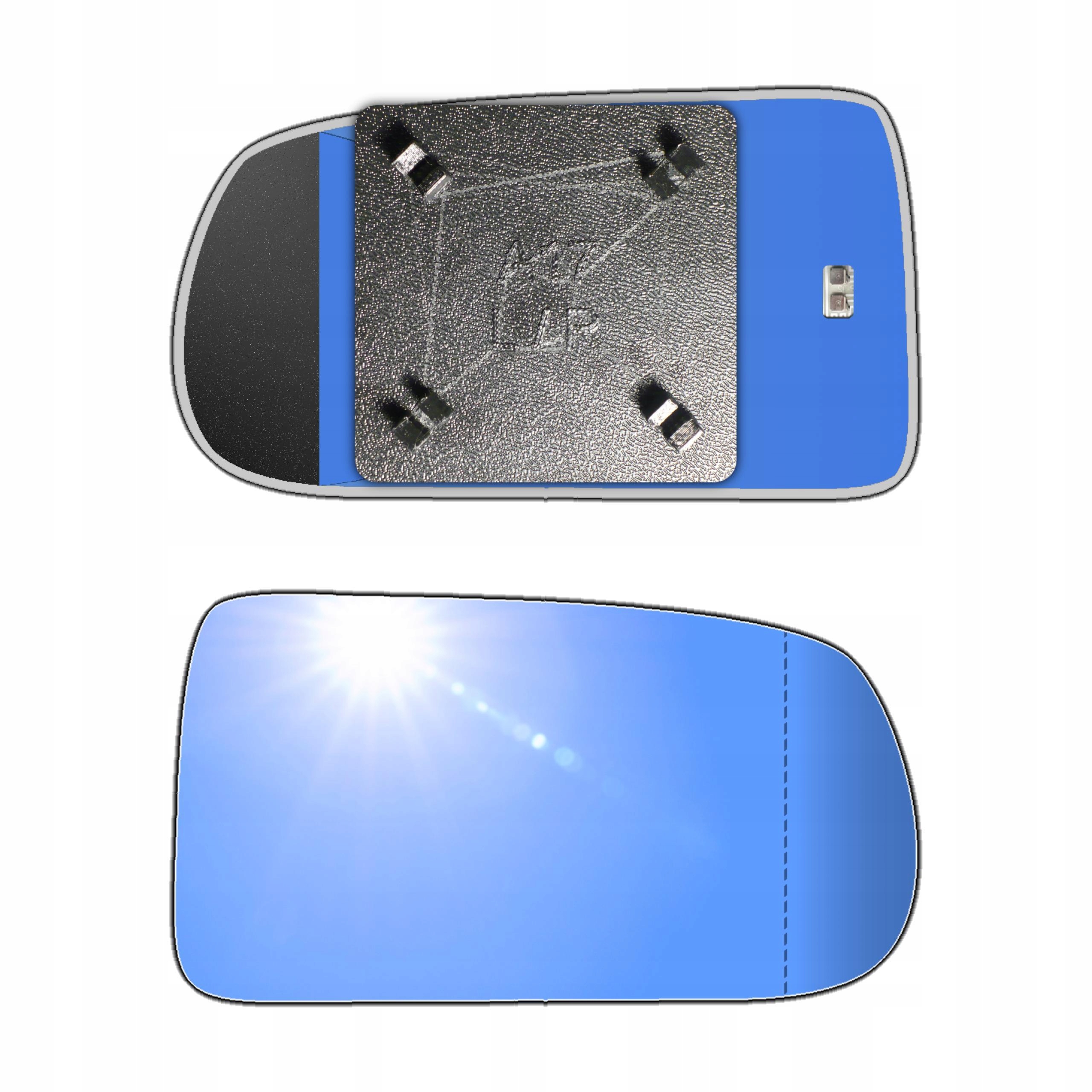 Antyrefleksyjny prawy ogrzewany wkład asferyczny lusterka - z plastikiem montażowym typu A17 i niebieskim oddalającym szkłem z grzałką