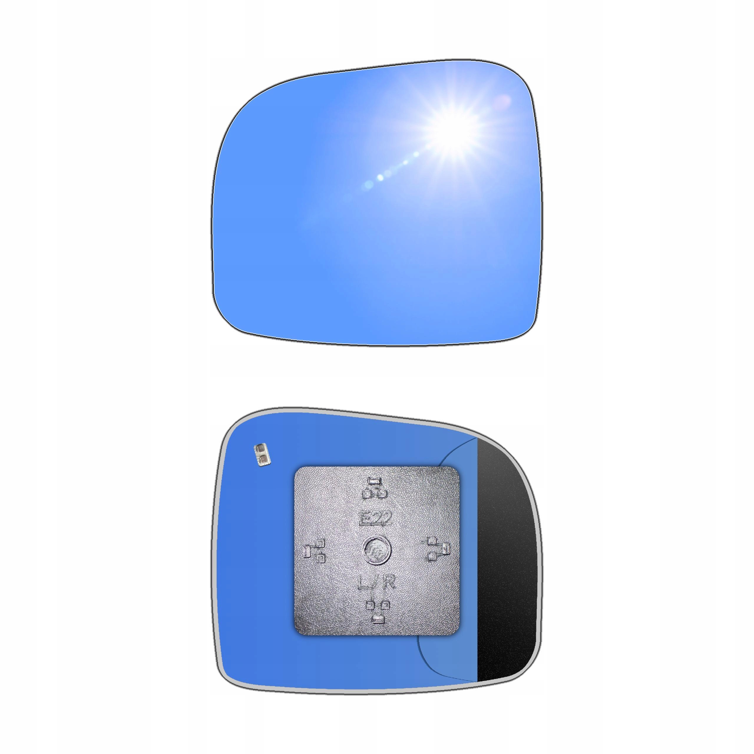 Lewy ogrzewany wkład sferyczny lusterka - z plastikiem montażowym typu E22 i niebieskim oddalającym szkłem z grzałką